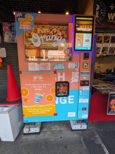 Fresh Squeezed Orange Juice. I cam across one in the former Tsukiji outer market and another in Kyoto that cost only ¥350.