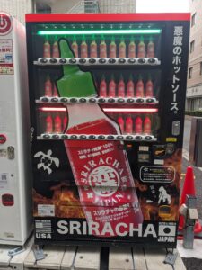 Sriracha. Named after the town in Thailand where this hot sauce was first made from chili peppers, vinegar, garlic, sugar and salt, this condiment can now be purchased from vending machines located throughout Tokyo as well as in much of the rest of the country, especially in larger cities. The variety sold here is Sriracha Japan brand.